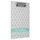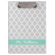 Grey and Aqua Quatrefoil Custom Monogram Clipboard