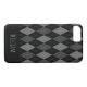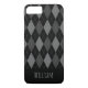 An iPhone 7/8 case designed with a grey and black argyle pattern. Customize the iPhone case with your name or text among other options.