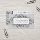 A chic design featuring a floral pattern drawn in black on a pale grey background with a white box in the centre for your name and profession.