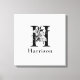 Grey and Black Floral Monogram Letter H Custom Canvas Print