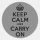 Grey and Black Keep Calm and Carry On Classic Round Sticker