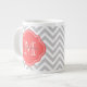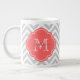 Grey and Coral Chevron Custom Monogram Large Coffee Mug