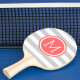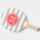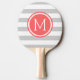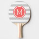 Grey and Coral Preppy Stripes Monogram Ping Pong Paddle