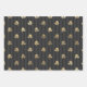 Vintage Paris grey and gold pattern wrapping paper in three different styles featuring harlequin, stripes, and roses.