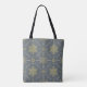 Festive grey, white, gold snowflakes christmas pattern on tote bag.
