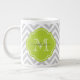 Grey and Green Chevron Custom Monogram Large Coffee Mug