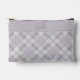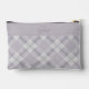 This cosmetics pouch or accessory bag features a grey and lavender plaid pattern with a wide lavender stripe across the top for a personalized name. Change the name right on the product page to make it your own!