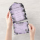 Introducing this exquisite lavender rose All in One wedding invitation where elegance meets sophistication. This invitation is designed to captivate your guests from the moment they lay eyes on it, featuring stunningly realistic lavender roses set against a luxurious dark grey background. The All-in-One wedding invitations are both beautiful and practical by combining the wedding invitation with an easy to remove perforated RSVP postcard. They are also quick and easy to prepare for mailing. Simply address the invitation, fold the back flap and seal with the included clear stickers. Once your guests receive the pre-addressed invitation they simply tear off the perforated RSVP card and drop it in the mail. The addition of the QR code allows your guests to easily access your wedding website for information including reception details and dinner choices!