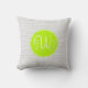 This pillow has a grey chevron pattern in the background with a green circle and a three letter monogram in the centre.
