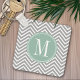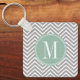 Grey and Mint Green Chevron Pattern with Monogram Keychain
