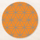 Grey and Orange Graphic Lotus Flower Design Round Paper Coaster
