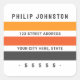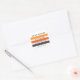 Square return address label featuring three stripes in dark grey and two shades of orange and customizable template fields for your name and address. Dark grey text.
