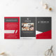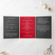This grey and red tri-fold brochure has a modern, yet professional look to it, with a clean and easy to read layout. It has ample room for personalized information about your company's strategy, success, history, and anything else you would like perspective clients to know. Include photos to create a personal feel. Edit text, colours, and logo to match your company's branding.
