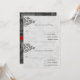 Black Damask On White Red Trim Save The Date shown on Linen Stationery - Black Damask On White with Red Trim Wedding Invitation -you choose paper style and colour - as well as - font style and colour. If you would like a glossy finish (glossy on front side only) order the basic, linen or metallic papers - for a matte finish order recycled, felt or speckled.
