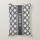 Modern grey and silver diamond and hexagon geometric pattern Lumbar Throw Pillow. Family text can be personalized.