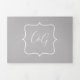 Elegant grey textured looking all in one wedding invitation, reception card and RSVP post card. The bride and groom's monograms, set in a white frame, are on the front of the card. Personalize every text fields with your information.