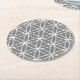 Grey and White Graphic Lotus Flower Design Round Paper Coaster