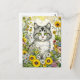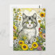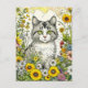 Grey and White Kitty Cat Sitting in Flowers Postcard