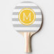 Grey and Yellow Preppy Stripes Monogram Ping Pong Paddle