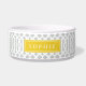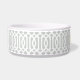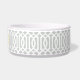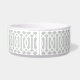 Cute customized cat or dog food bowl with a grey imperial trellis pattern and rectangle frame placeholder for your beloved pet's name.