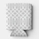 Cute trendy monogrammed can or bottle cooler with a preppy trellis pattern. Personalize it with a custom monogram or other text in a chic quatrefoil frame. Click Customize It to change text and fonts to create a unique one of a kind gift for your bridesmaids and wedding party! Contact me before ordering to customize patterns or design to coordinate with any wedding colours.