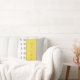The front has a yellow stripe in the middle and the back of the cushion has a grey middle stripe.