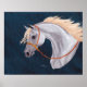 A poster from an original oil painting of a Grey Arabian Horse wearing a show halter with a few sparkles. -- Artwork is copyrighted by me, the artist.
