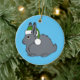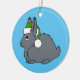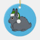 Grey Arctic Hare with Christmas Green Santa Hat Ceramic Ornament