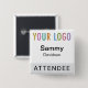 Grey Attendee Name Badge with Logo Pinback Square 2 Inch Square Button