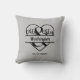 A black and grey throw pillow gift for the newlyweds. Personalize it with their name and wedding date. You can click "edit more" to change the back ground colour.