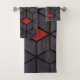 Grey Black Red Cubes Bath Towel Set