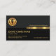Overleaf, the same design theme is used. Above the gold stripe is the business name with the contact details and slogan option directly underneath. The gold logo is at the upper left corner.