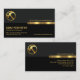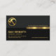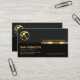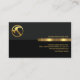 Overleaf, the same design theme is used. The upper layer has the gold logo at the corner with the business name above the gold stripe. The black layer underneath houses your contact details and a slogan option to publicize your services.