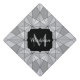 Grey black white Mosaic Triangle Pattern Monogram Graduation Cap Topper