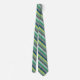 This necktie has a retro vibe with its diagonal stripes in shades of grey, lime green, kelly green, light blue and medium blue.