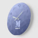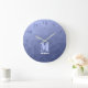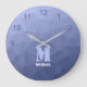 Grey blue gradient geometric mesh pattern Monogram Large Clock