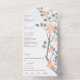 Ultimate grey branch with peach flowers initials wedding all in one invitation with tear off detachable RSVP. A lovely design for your wedding featuring a cascading grey and black branch with peach blossoms.