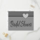 This cute invitation features a two-tone grey and slate grey background highlighting a hand drawn lighter grey heart with a Bridal Shower announcement printed in a bold black script font.