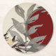 Stylish round paper coaster features an artistic abstract design in a cream, burgundy and grey colour palette. An artistic abstract design features a watercolor leaf and a geometric circle composition with shades of burgundy and grey with black and gold accents on a creamy ivory background.