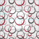 Burgundy red and grey circles and rings in a free arrangement. A modern design suitable for a variety of uses.