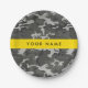 Grey Camouflage Pattern, Your name, Personalize Paper Plate