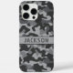 Customize this grey camouflage iPhone 16 pro max case with your name in a trendy modern CAP font in dark grey on light grey. It's masculine and perfect for your favourite military, hunting, country or outdoorsman!