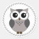 Grey cartoon owl inside grey ring classic round sticker
