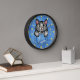 This fun novelty clock includes a faux (printed) denim / blue jean look and includes a cartoon grey kitty cat that appears as if it's sitting inside a pocket! The design also includes "patches" (printed) that resemble the silhouettes of paw prints. Time is kept with printed "buttons." Use the easy template to add your name or your cat's name to the design (or simply delete the sample name "Tabitha" to order without a name). These cute clocks make the perfect gift for any cat owner! They would also be fun for an animal groomer or vet.