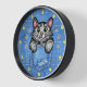 Grey Cat in Faux Denim Pocket with Custom Name Clock