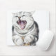 grey cat on white background mouse pad
