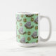 Grey Cat Pattern with Green Ornaments Coffee Mug