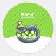 Grey Cat Scarf Christmas Green Stripe Classic Round Sticker