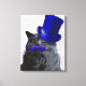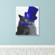 Grey Cat With Blue Top Hat and Blue Moustache Canvas Print