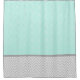 Stylish cloth shower curtain done in a mint green with tiny white polka dots and a grey and white chevron pattern, across the bottom. Matching bathroom accessories are available.
